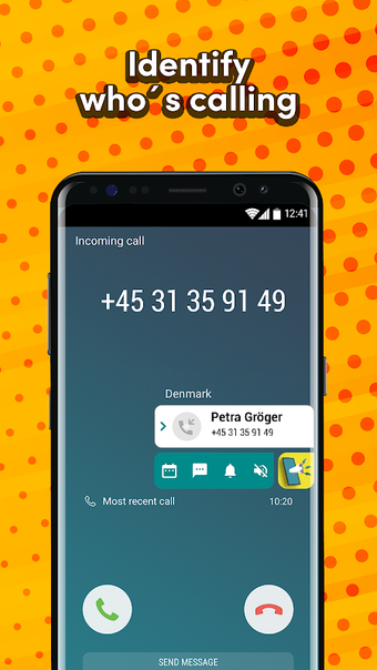 O aplicativo também pode ser usado para chamadores que não estão em seu catálogo de endereços ou lista de contatos. Ele pode identificar números desconhecidos e também anunciar o nome do chamador se você receber uma chamada de um número desconhecido.